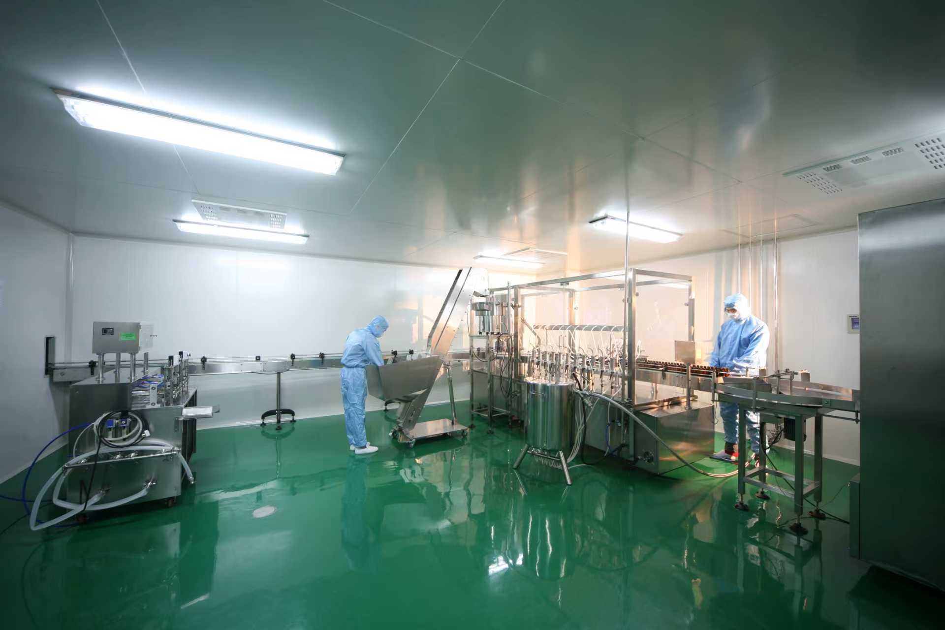 生产中心配备8条进口全自动液态产品生产线,可同时满足6个不同品种的灌装需求,日产能达30万袋/瓶,具备20-50mL玻璃瓶、15-30mL自立袋及多种异形袋的生产能力。厂区内建设有2个十万级GMP洁净生产车间,严格遵循药品级生产标准,确保产品安全与品质稳定。